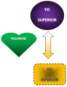 Entonces, volviendo a la alineación, lo que fue muy importante para mí escuchar de Lama Geshe Tenzing fue esto de que tenemos que usar el raciocinio para entender el origen de nuestros pensamientos y sentimientos y una vez que llegamos a ese punto necesitamos asentar ese conocimiento, en el corazón, a través de la práctica de esa comprensión. Por ejemplo, si llego a entender que la carne y el azúcar me hacen daño, necesito dejar de consumirlos, esta es la práctica. No me sirve de nada la comprensión si no la puedo manifestar. Una vez que se manifiesta y se marca esa manifestación, logramos una comprensión integral, o lo que he llamado anteriormente, una comprensión a nivel celular que nos hace emanar esa sabiduría. La comprensión y la práctica hacen que el yo inferior y el Yo Superior se alineen. Por eso, podría decir que el fortalecimiento de la voluntad, mediante la práctica, es lo que alinea estos dos aspectos de nuestra existencia. Ilustrada esta idea se vería así: