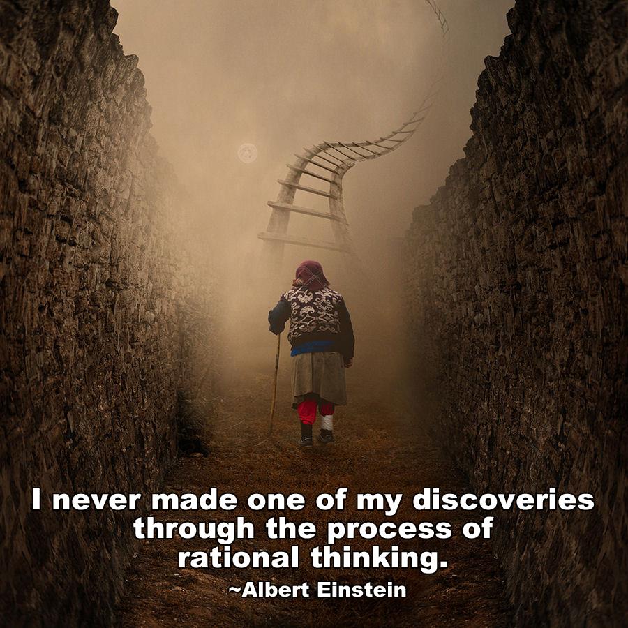 tienen en común el pensamiento racional y el ego es que son sumamente limitados. Su funcionalidad se aplica a cosas concretas. Tanto el ego como el pensamiento racional son necesarios sino que nosotros les hemos dado todo el peso de la existencia como si por este medio es como se puede conocer la verdad de las cosas y no es así, justamente, por la limitación que tienen. Nos sirven para manifestar, para comunicar, para entender de forma concreta las experiencias que vivimos. Ahora, la relación entre el lado derecho del cerebro, la intuición, el alma y el pensamiento abstracto es que, a través de su ilimitada creatividad, entendemos la esencia de las cosas de forma directa, abstracta, y así se nos revela la verdad. No es concreto en la manera en que lo es el lado izquierdo. Más bien es muy amplio y llegamos a procesar algunas cosas abstractas de forma concreta para poder comunicar o manifestar. Los dos lados son importantes y necesarios sino que ahora es el momento para despertar todo lo que hemos reprimido, colectivamente, en el lado derecho del cerebro. Como está en la imagen con esa frase de Albert Einstein que dice: «nunca hice ninguno de mis descubrimientos a través del pensamiento racional.» Esto es muy significativo y Einstein era un promotor de la intuición.